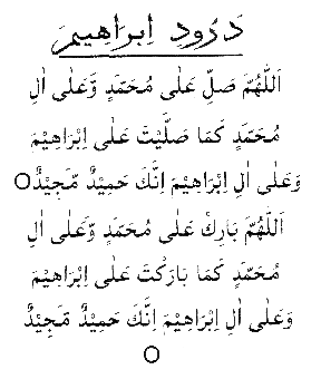 ALLAHUMMA SALLI ALA MUHAMMADIW WA ALA AALI MUHAMMADIN KAMAA SALLAITA ALA IBRAHIMA WA ALA AALI IBRAHIMA INNAKA HAMIDUM MAJID.
