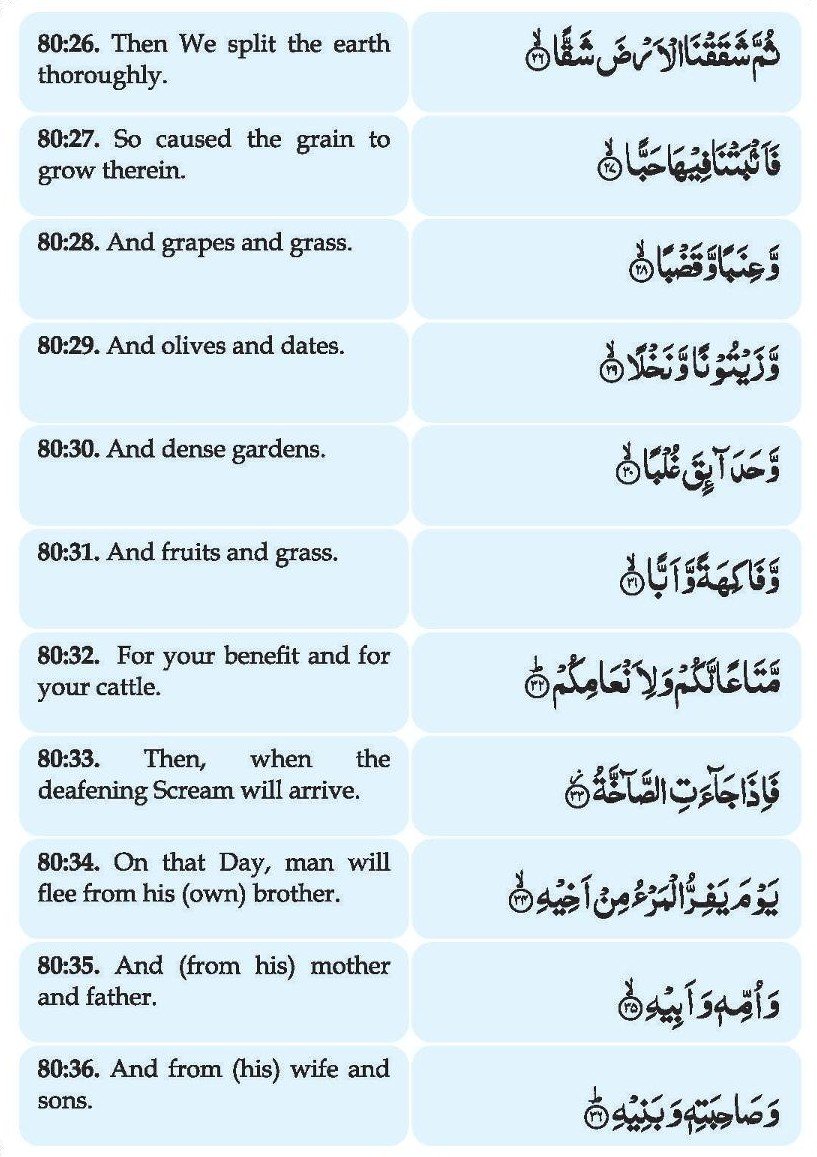 34. Yauma yafir-rul mar-u min akheeh