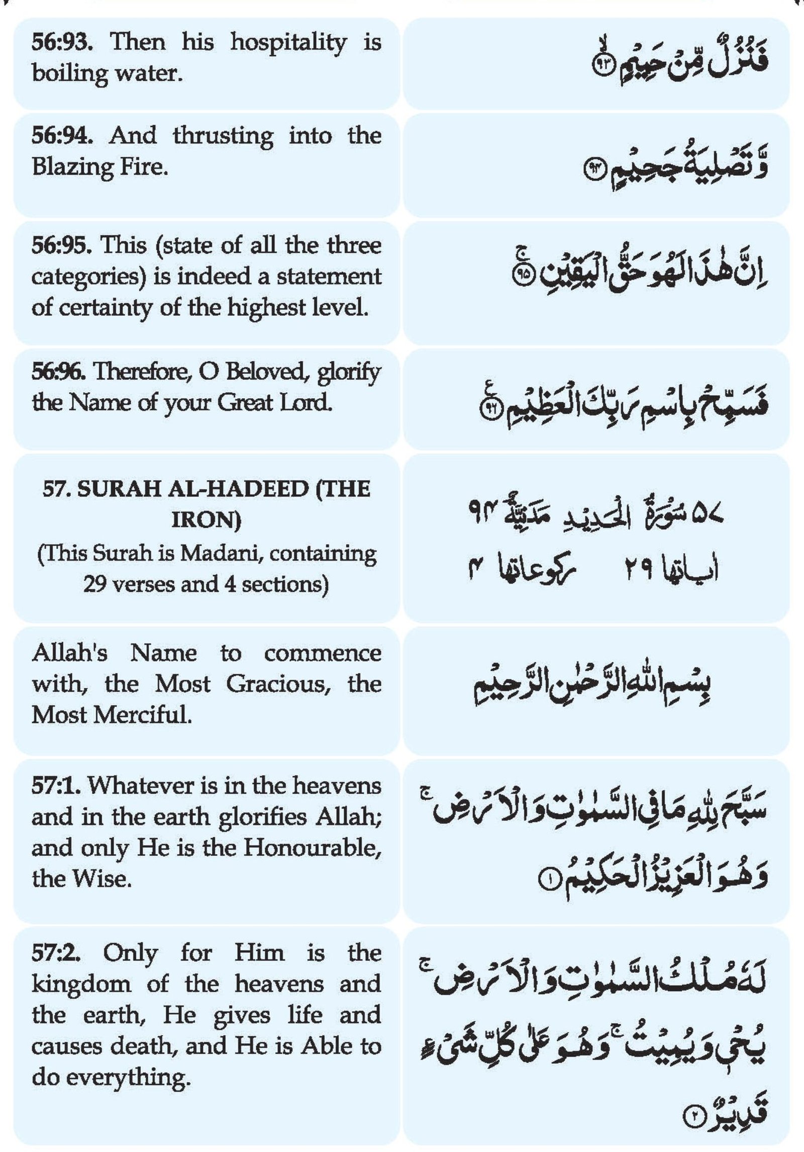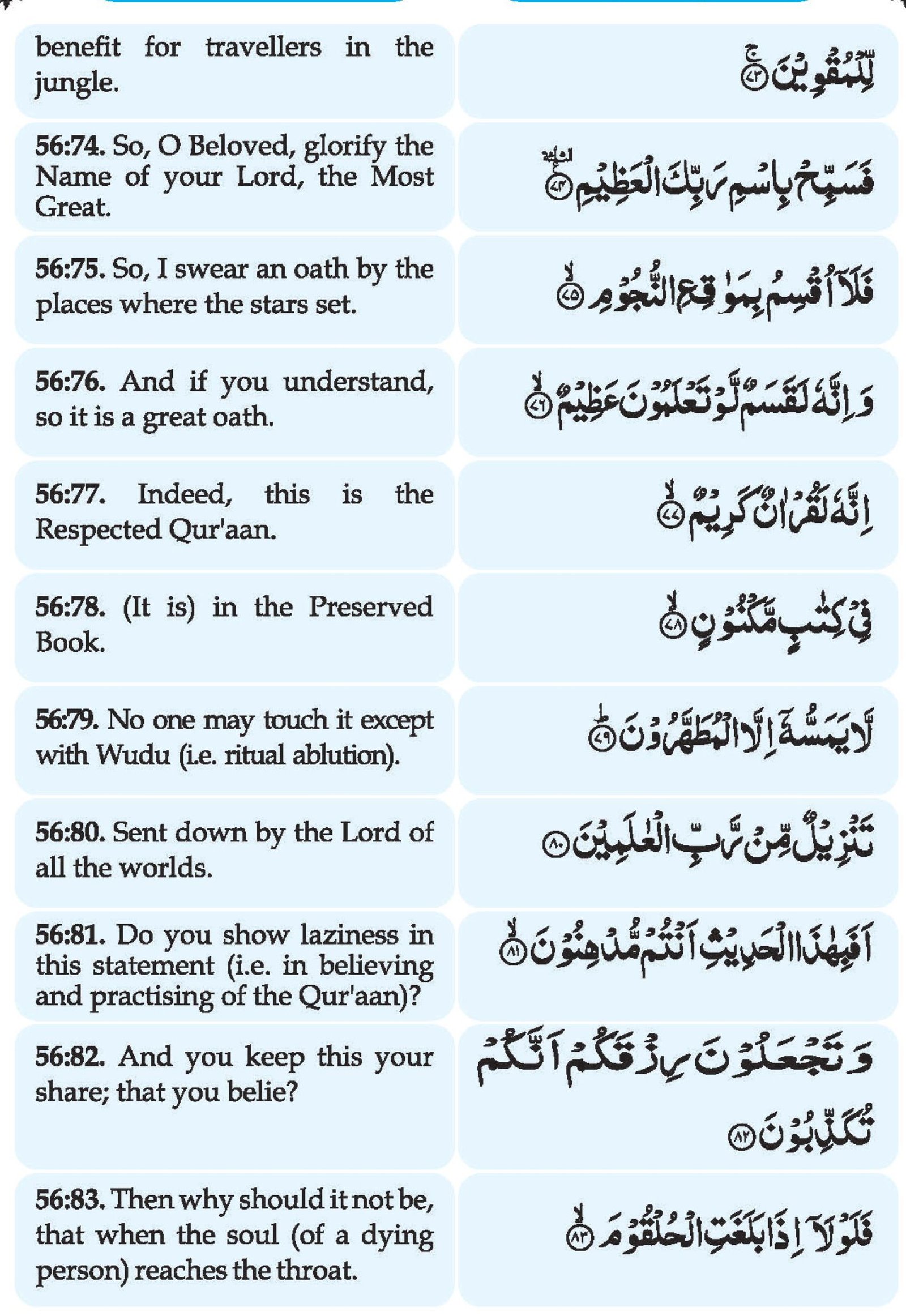 56:96. Therefore, O Beloved, glorify