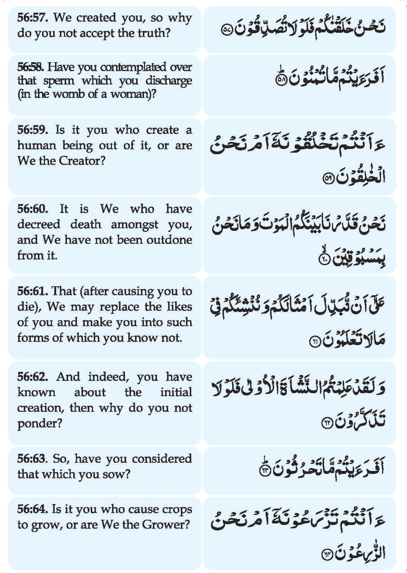 - ‘A-antum takhluqoo nahooo am nahnul khaaliqoon
