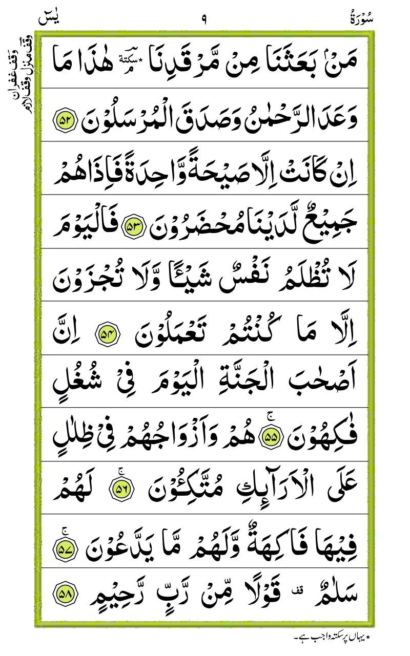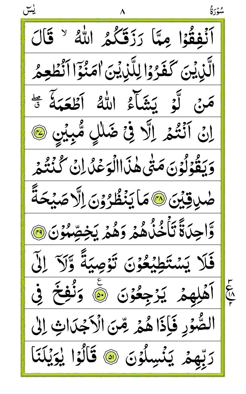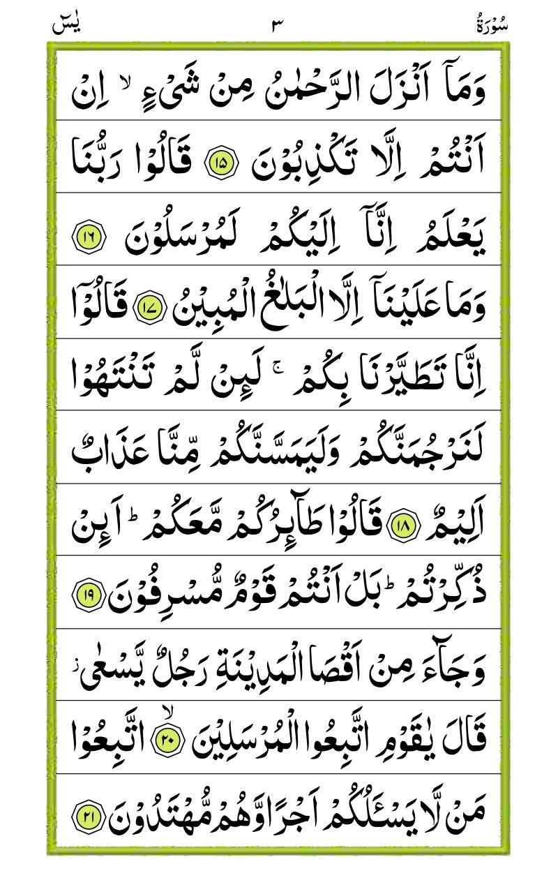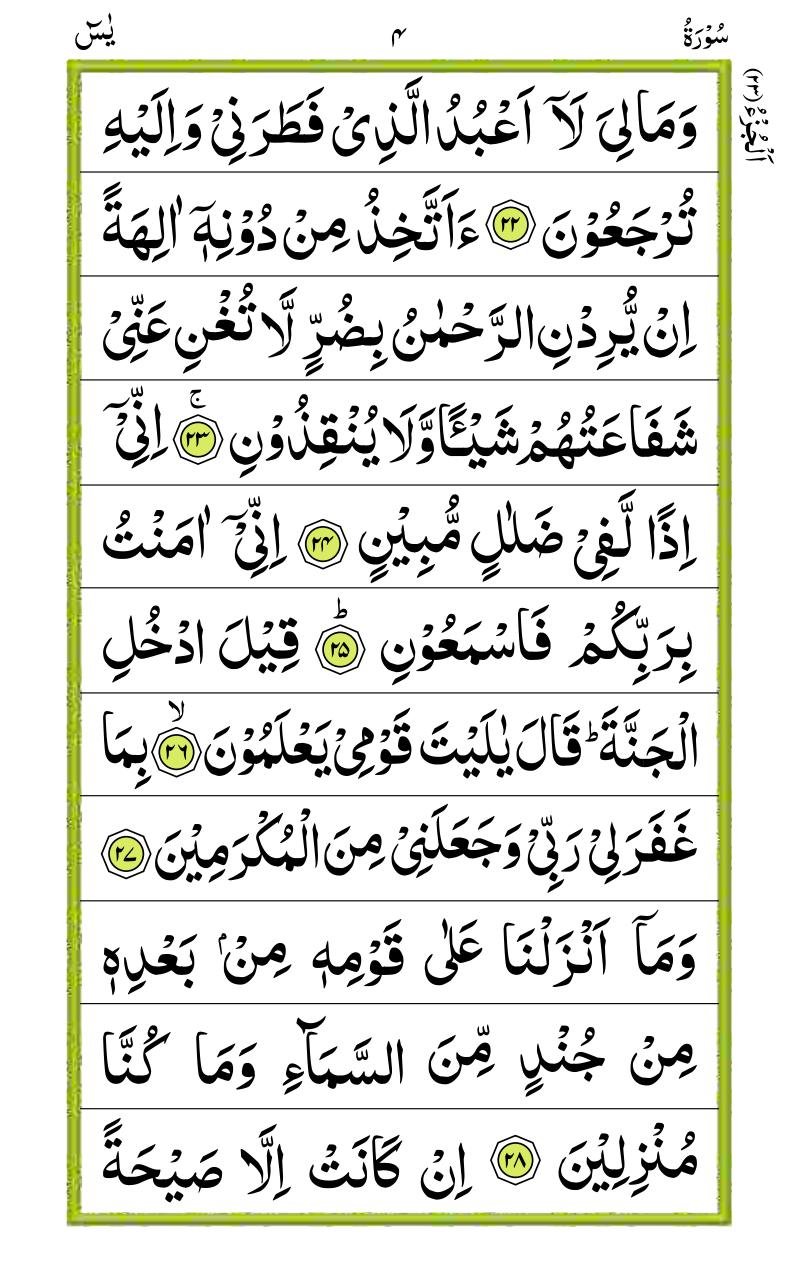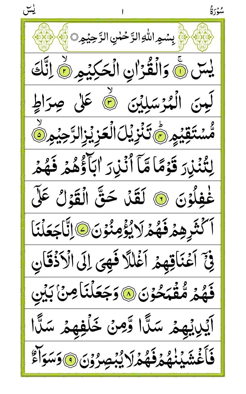“जो सूरह यासीन को अल्लाह की रज़ा के लिए पढ़े, उसकी हर जरूरत पूरी कर दी जाती है।” (इब्न कसीर, तफ़सीर)