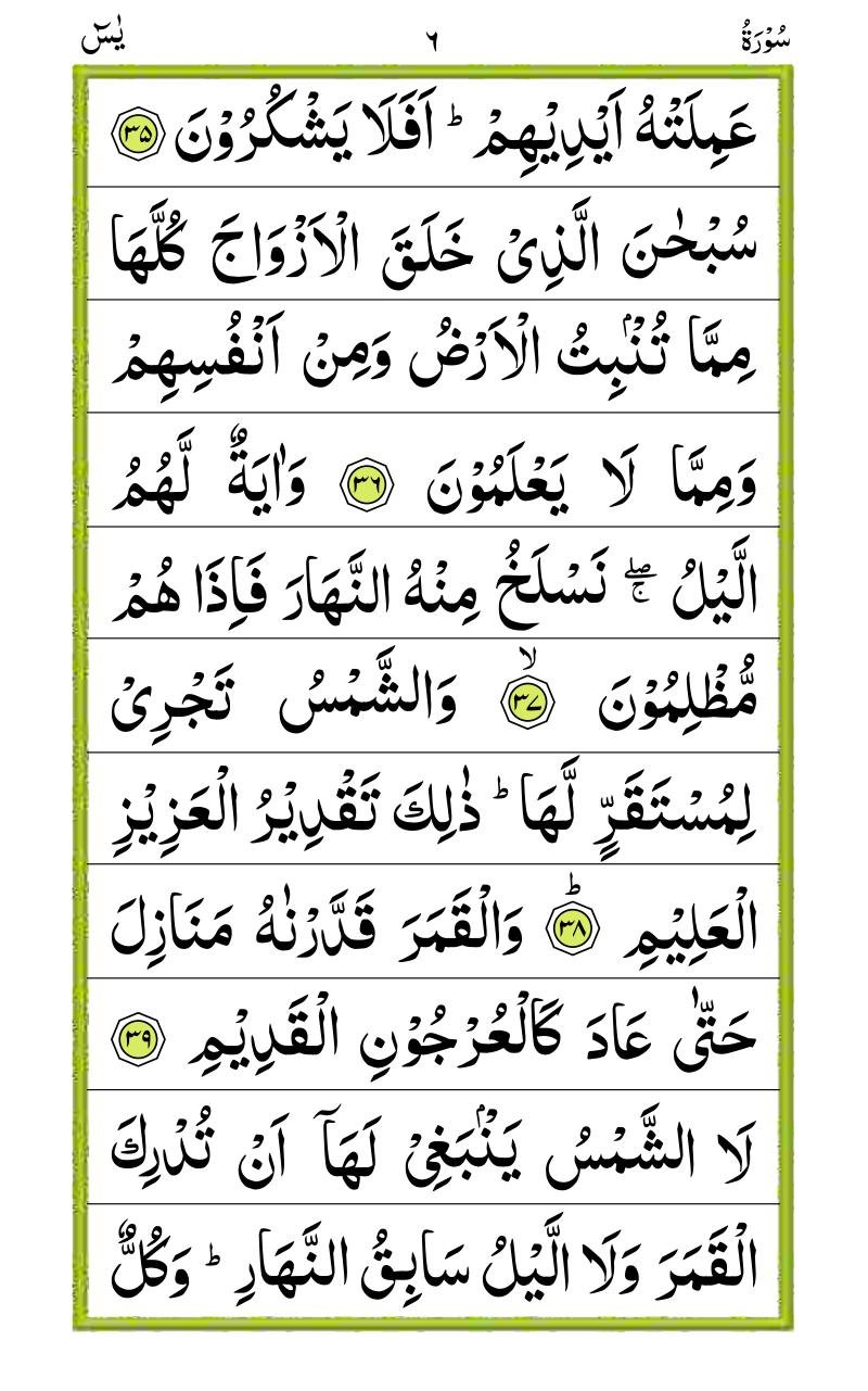 (40) लश शम्सु यमबगी लहा अन तुद रिकल कमरा वलल लैलु साबिकुन नहार वकुल्लुन फी फलकिय यसबहून